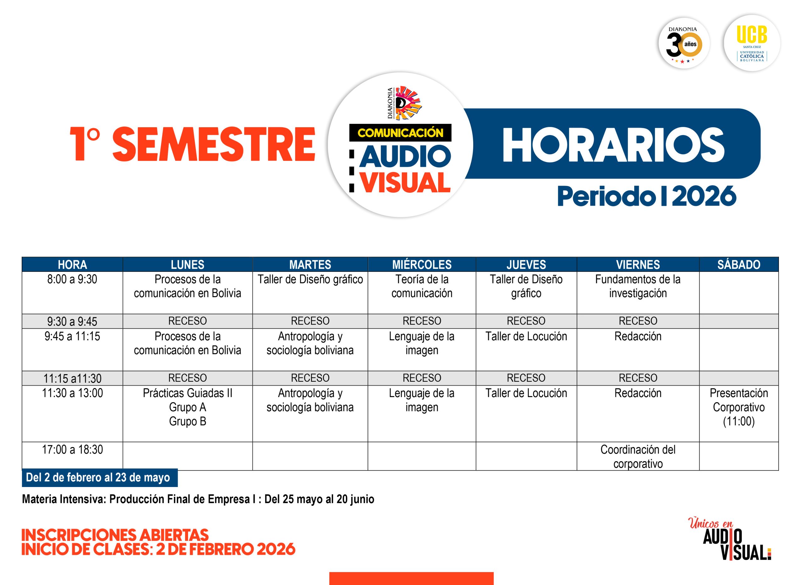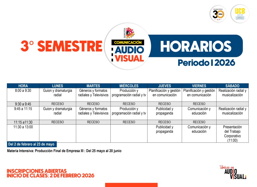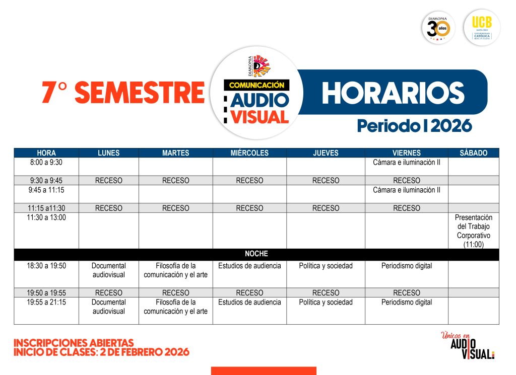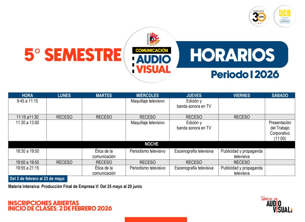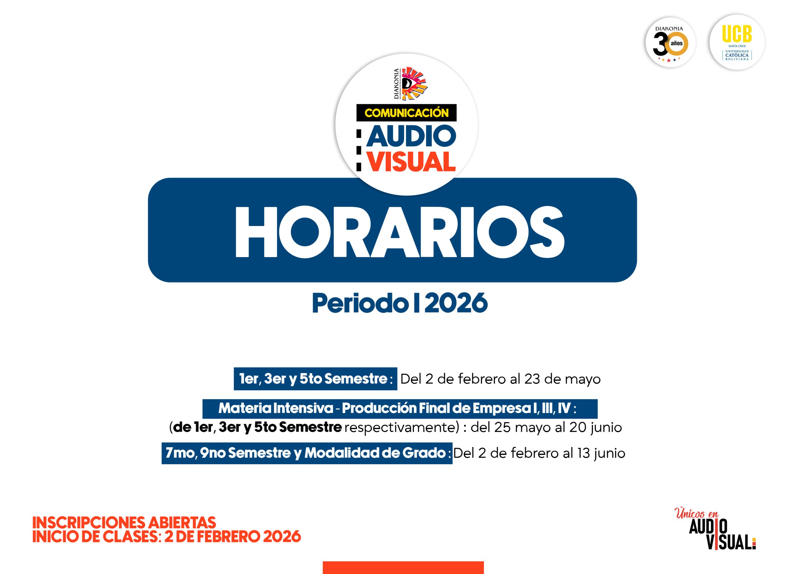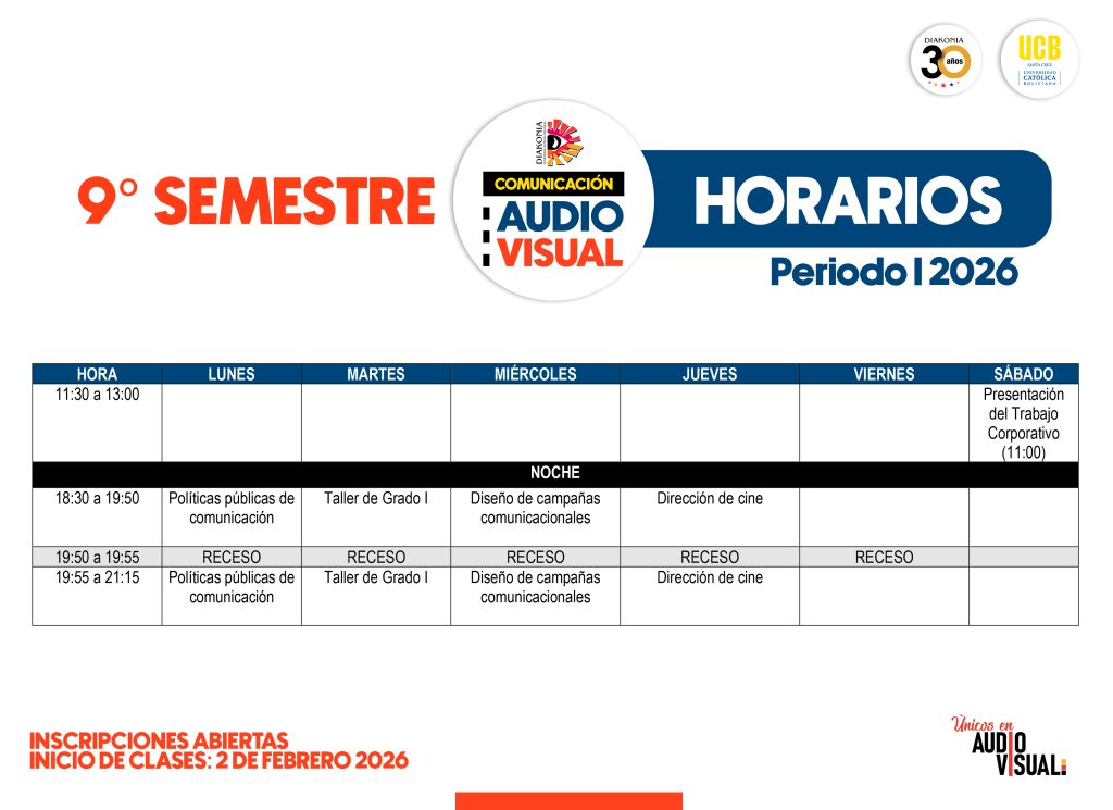 Autor de la entrada:Diakonia Categoría de la entrada:Oferta Académica Compartir Compartir este contenido Se abre en una nueva ventana Se abre en una nueva ventana Se abre en una nueva ventana Se abre en una nueva ventana Se abre en una nueva ventana Leer más artículos Entrada anteriorDIPLOMADO EN DIRECCIÓN DE CINE – 5TA VERSIÓN También podría gustarte CAPE 2026 – Curso Especializado en Artes Audiovisuales 21 enero, 2026 SISTEMAS DE BECAS 8 agosto, 2020 LIC. COMUNICACIÓN AUDIOVISUAL 8 agosto, 2020